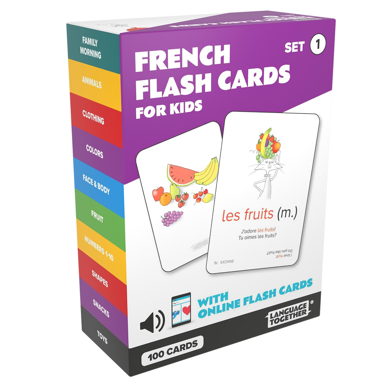 French Flash Cards Set 1 is designed for children ages 3–8 who are beginning to learn French. That said, younger and older kids who are just getting started love it too!